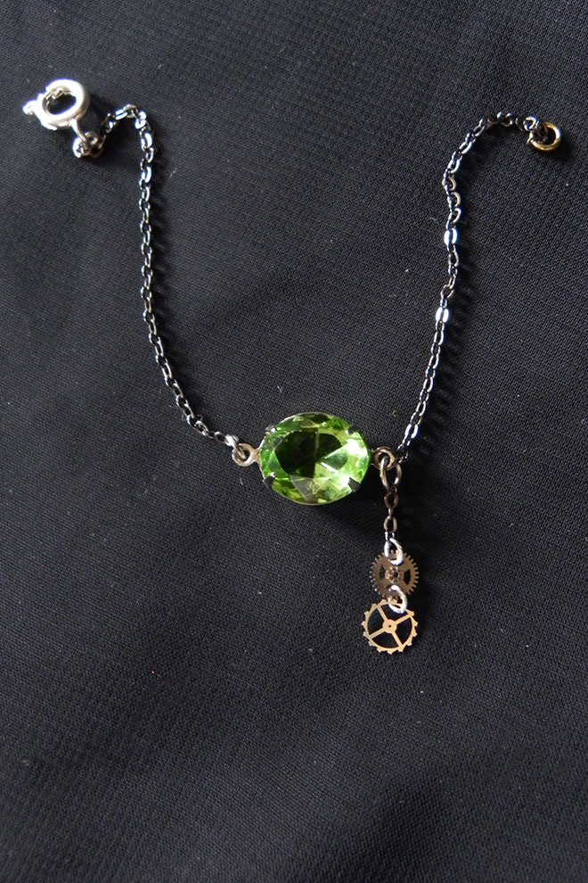 Contains: Silver plated bracelet made of green colored swarovski crystal with watch piece accents. one of a kind.